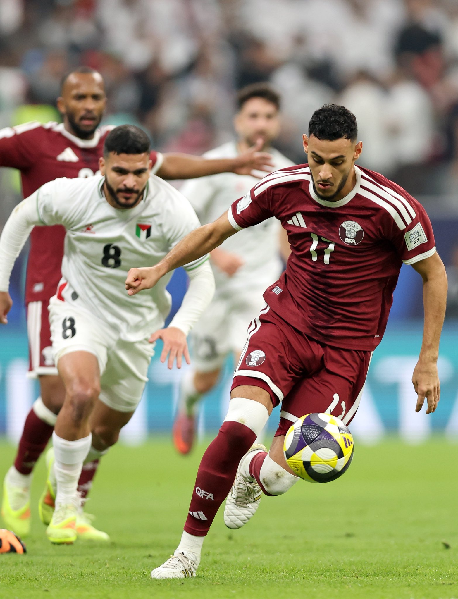 شهدت المباراة، التي جمعت العنابي وفلسطين حضورا جماهيريا تجاوز ال 60 ألف متفرج، وانتهى شوط اللقاء الأول بالتعادل السلبي، مع أداء متوسط من كلا المنتخبين، حتى تحسن مستوى الأداء في الشوط الثاني وكان المنتخب الفلسطيني هو الطرف الأكثر مبادرة، مشكلا ضغطاً متواصلا على الدفاعات القطرية وأهدر ثلاث فرص حقيقية للتسجيل.